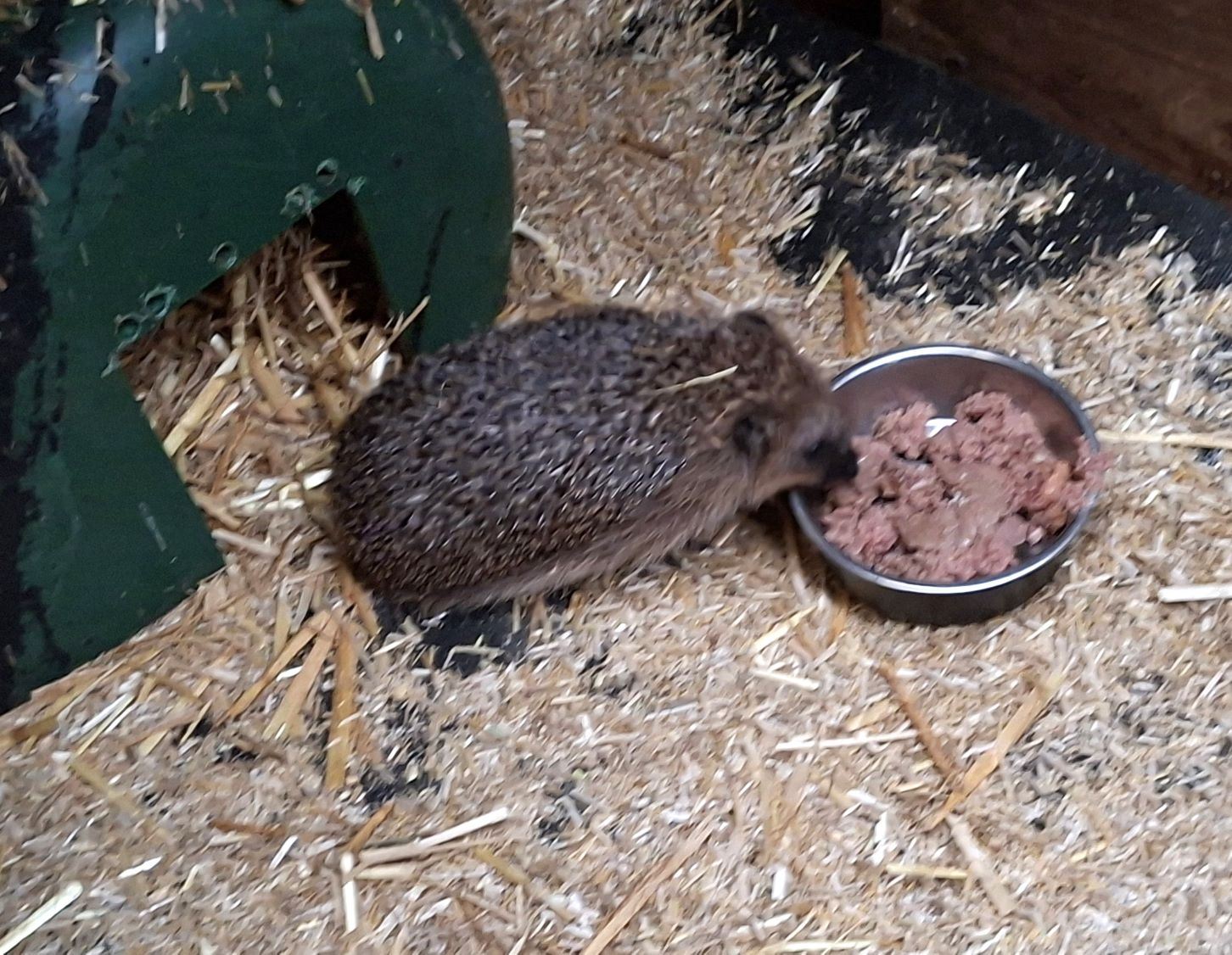Wir haben wieder einen zu kleinen Igel gefunden. Eine ganz liebe Igelretterin, die wir kennengelernt hatten, hat die Erstversorgung übernommen (Kotprobe, Wurmkur und Parasitenbehandlung). Nachdem unsere kleine Marie (so haben wir die Igeldame getauft) stabil war, haben wir sie übernommen um sie sicher über den Winter zu bringen. Mittlerweile sind noch Piet und Mattheo eingezogen. Auch sie werden bei uns überwintern und im Frühjahr auf unsere über 20 ha Wiesen ausgewildert. Die kleine Marie hat gut zugenommen und schläft mittlerweile. Die beiden Jungs brauchen noch etwas. Alle sind getrennt untergebracht, nur die Einrichtung ist gleich. Auch wenn die Igel schlafen stellen wir täglich frisches Wasser und Futter hin. Falls sie aufwachen müssen sie ja etwas finden. Bei Jungigeln kommt es oft vor, das sie zwischendurch aufwachen und nach Futter suchen. Es ist ja ihr erster Winterschlaf.