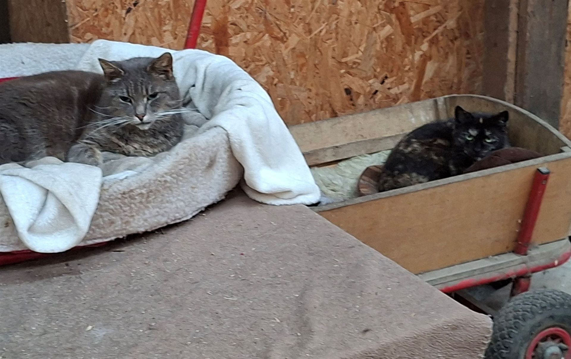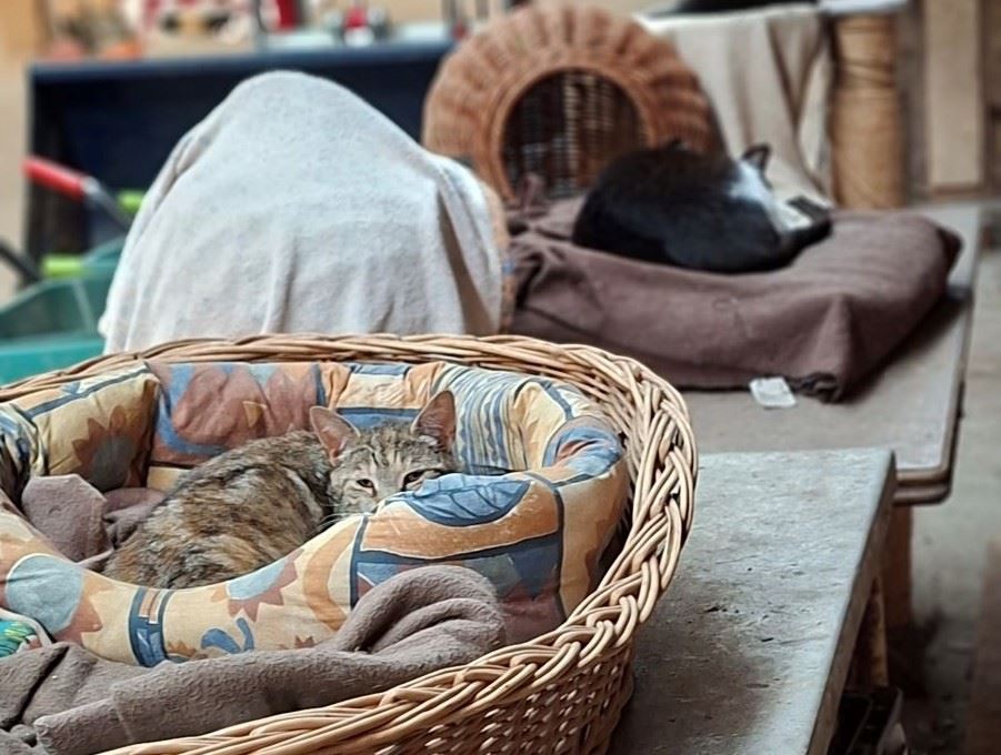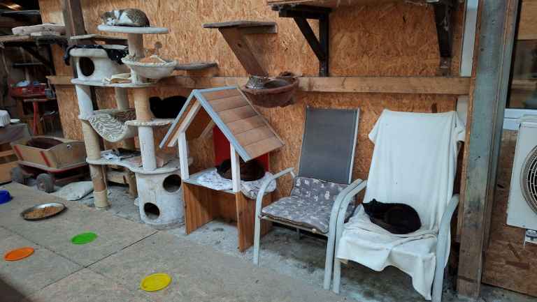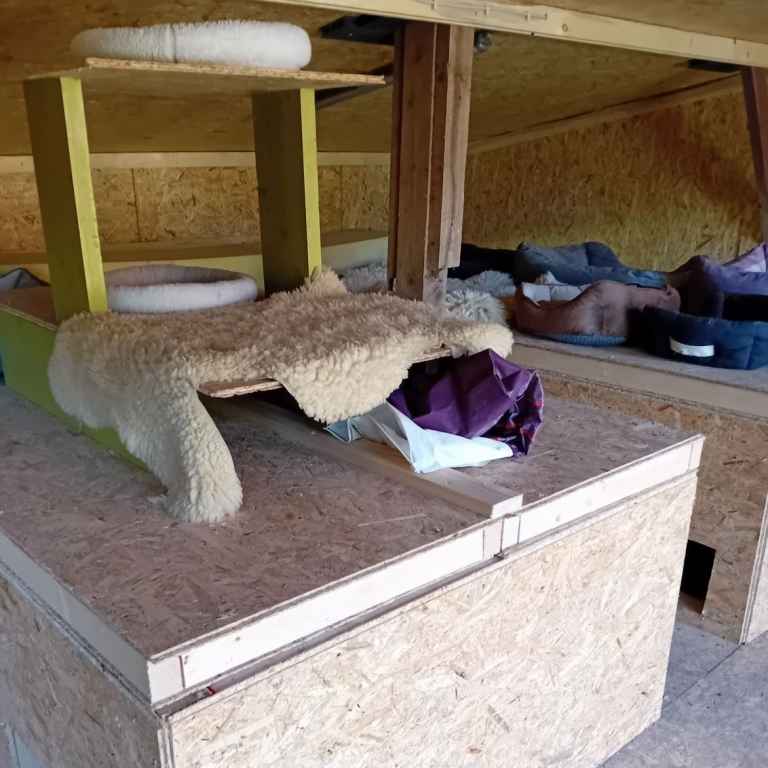 Ein neues Katzenhaus mit vielen Schlafplätzen wurde gebaut. Die Schlafhäuser sind gut isoliert. Es gibt Katzenlöcher nach draußen und immer frisches Wasser. Kleinigkeiten fehlen noch, aber die Katzen haben es schon besucht und für gut befunden. Danke an alle Spender von Bettchen und Decken. So etwas wird immer sehr gebraucht.