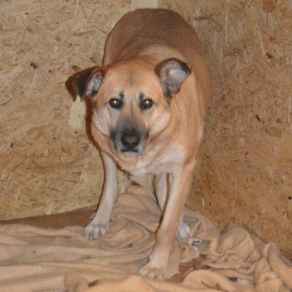 " Hope " ist auch eine unserer ängstlichen Hunde. Sie kommt mittlerweile zu ihrer Bezugsperson und lässt sich vorsichtig den Kopf streicheln. Hope hat in der Vergangenheit nicht viel Gutes erlebt