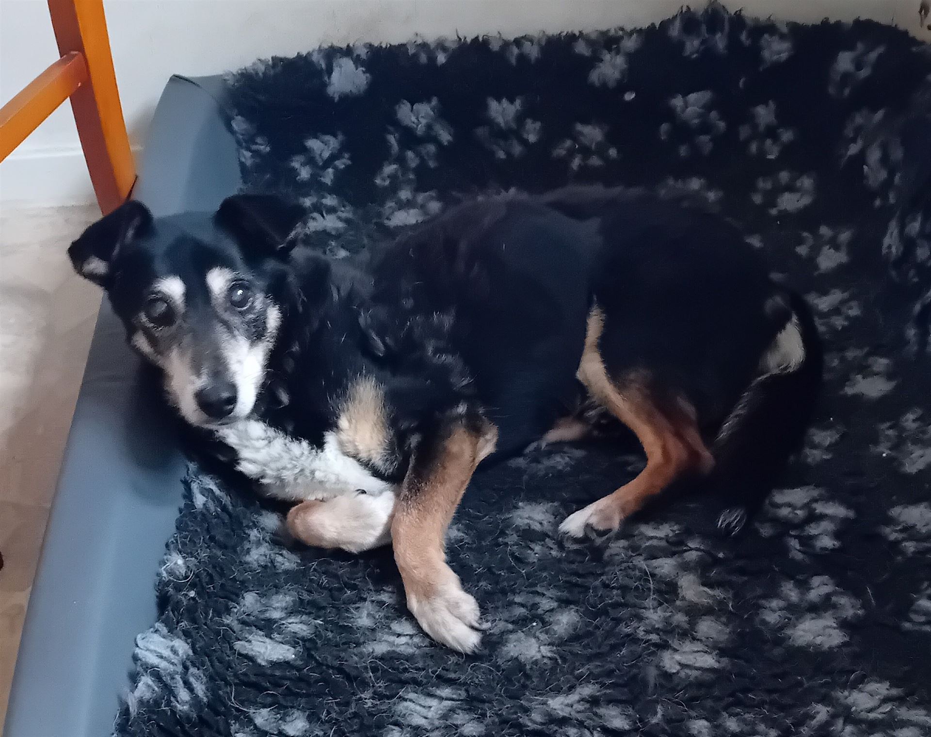 " Greta " war eine sehr alte und ängstliche Hündin. Sie war einfach alt und ihr Körper konnte nicht mehr, so haben wir sie gehen lassen. Die kleine Oma hat die Zeit bei uns sehr genossen, einfach Hund sein, genügend zu fressen haben, warm und weich schlafen und eine Wiese zum rumlaufen.