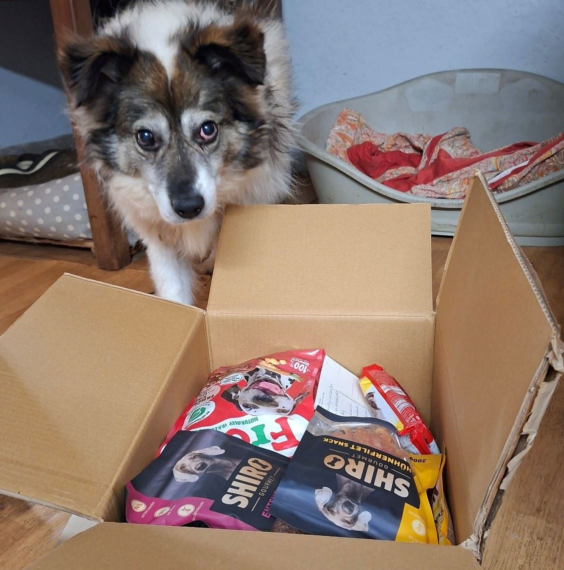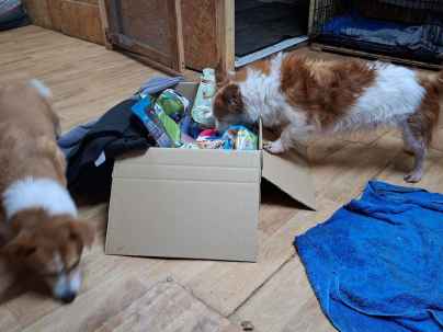 Hallo, schaut mal, der liebe Rusty hat ein Weihnachtspäckchen bekommen. Vielleicht hat ja jemand von euch Lust unseren Tieren ein Päckchen zu schicken. Wir haben einen Amazon - Wunschzettel mit Beispielen, was sie gerne mögen. Natürlich kann man die Sachen auch woanders kaufen und den Tieren schicken. Unsere Vierbeiner würden sich sehr freuen.