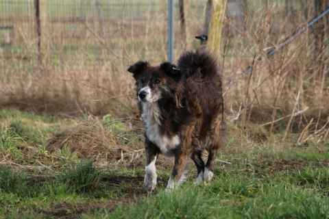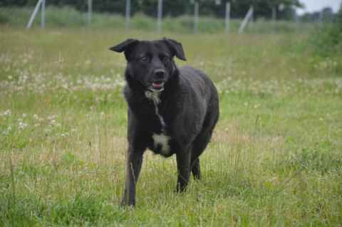 " Bommel " (früher Amik ) ist seit kurzem bei uns auf dem Hof. Er kommt aus Polen und hat dort viele Jahre im Tierheim verbracht. Er ist lieb, gut verträglich und genießt die große Hundewiese. Menschen gegenüber ist er vorsichtig, aber wir können ihn schon streicheln.