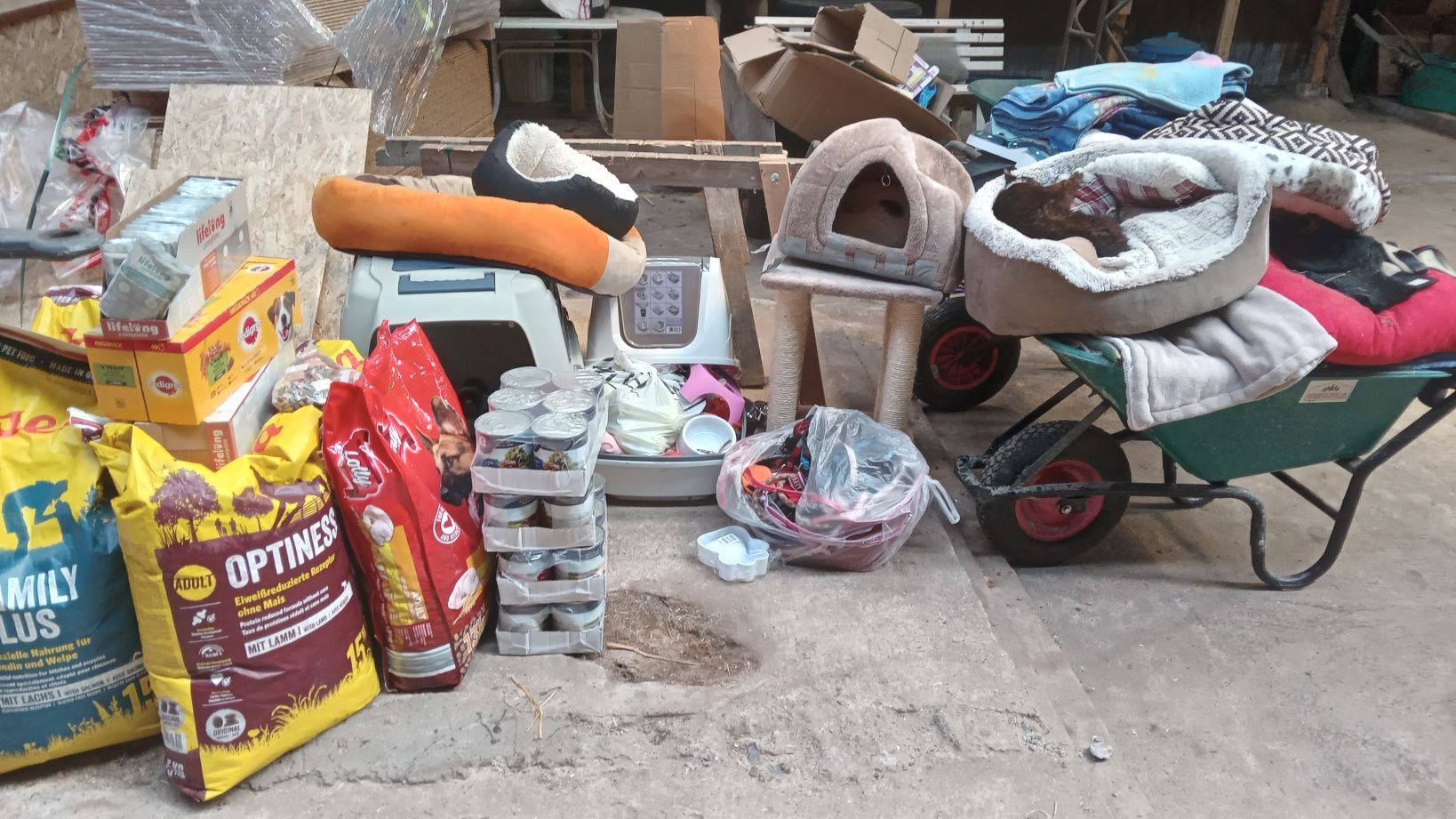 Die liebe Evelyn hat in ihrem Freundes - und Bekanntenkreis und in ihrem Wohnort Werbung für uns gemacht und ordentlich Spenden gesammelt. Toll was da zusammen gekommen ist, Nass - und Trockenfutter, Decken, Körbchen, Spielsachen, nicht mehr benötigte Tiermedikamente, Leinen, Näpfe usw. Wir freuen uns sehr.