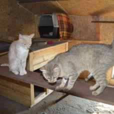 Das Tierparadies hat wieder eigene Katzen. Auf unserem Hof ist soviel Platz und es sind so tolle Versteckmöglichkeiten für scheue Katzen vorhanden. Darum haben wir beschlossen, einigen Wildlingen ein Zuhause zu geben. Es wurde ein Raum für die Eingewöhnungszeit gebaut. Dort gibt es Höhlen und Klettermöglichkeiten für die Eingewöhnungszeit. Wir haben über zwei Tierheime Katzen aufgenommen. Alle selbstverständlich kastriert.